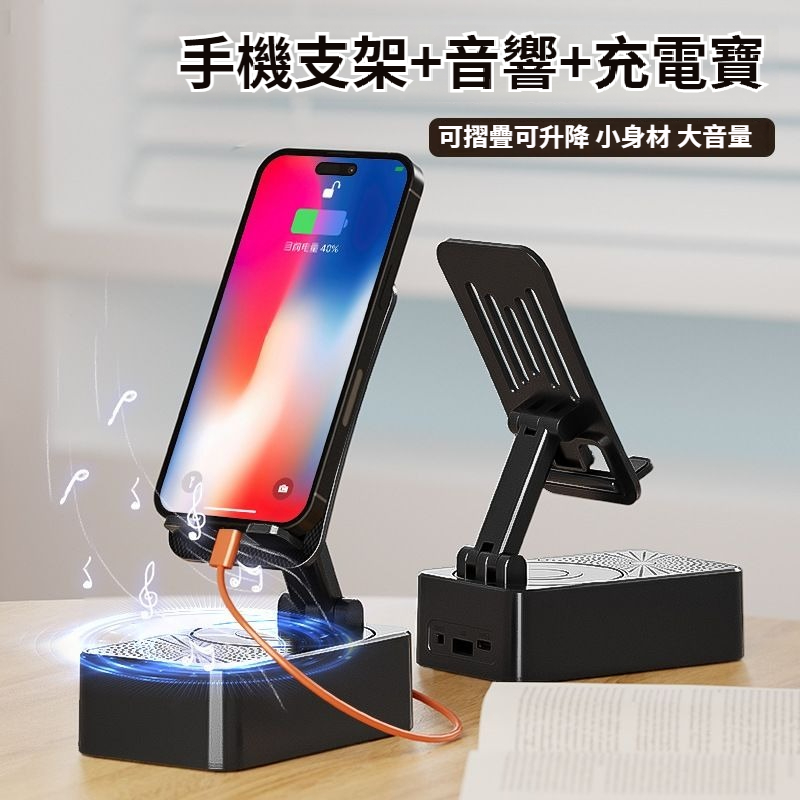 【四合一藍牙映充電支架】藍牙音響+充電寶+支架三合一