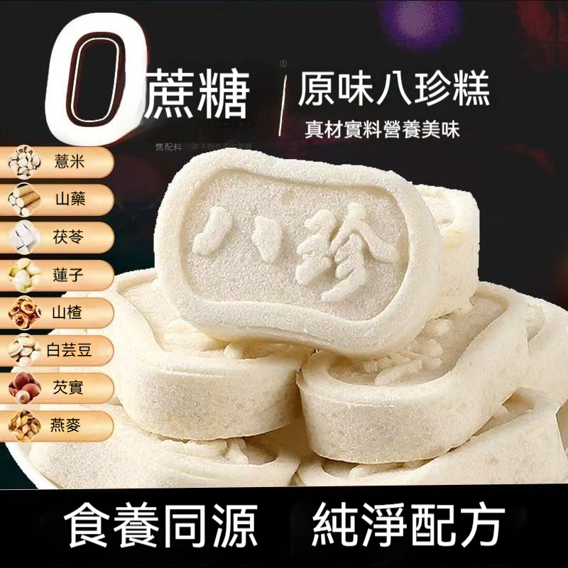 適合老人小孩吃的茯苓古法八珍糕,優選八種珍貴草本食材,吃在嘴裡滿口穀物原香,好吃還沒什麼負擔,真正的健康零食!