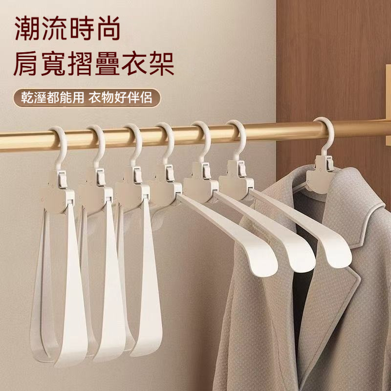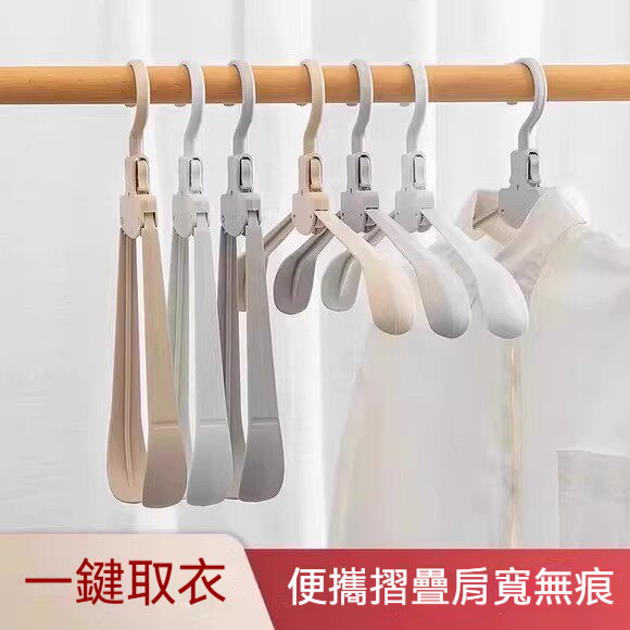 【自動回彈加寬魔術衣架】一秒摺疊更實用!居家旅行必備!加粗加厚架pp材質,承重力max.